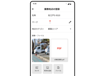 地図上の作業地点ごとに画像・ファイルを登録できるようになりました。